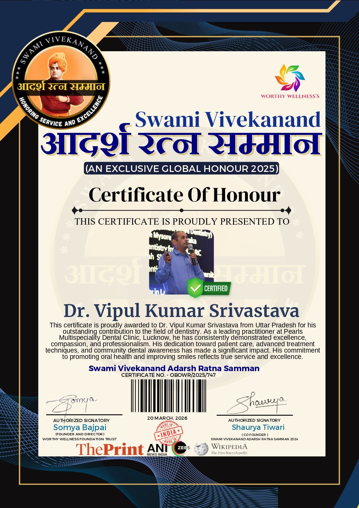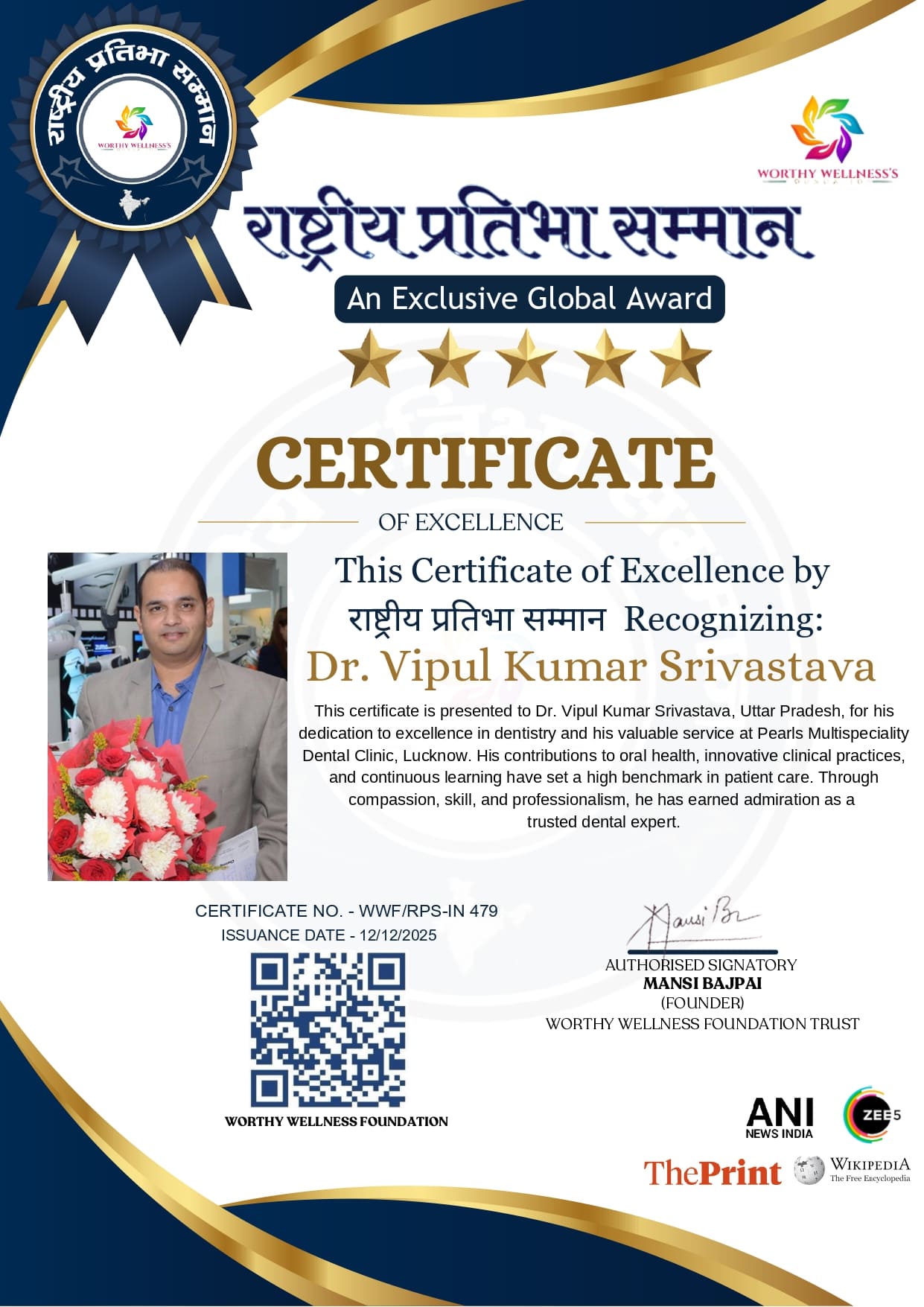 32 Pearls Multispeciality Dental Clinic is a well-established and trusted dental care center in Lucknow, delivering comprehensive dental services since 2003. Founded and led by Dr. Vipul Srivastava, the clinic has earned a strong reputation for ethical practice, clinical excellence, and patient-first care.